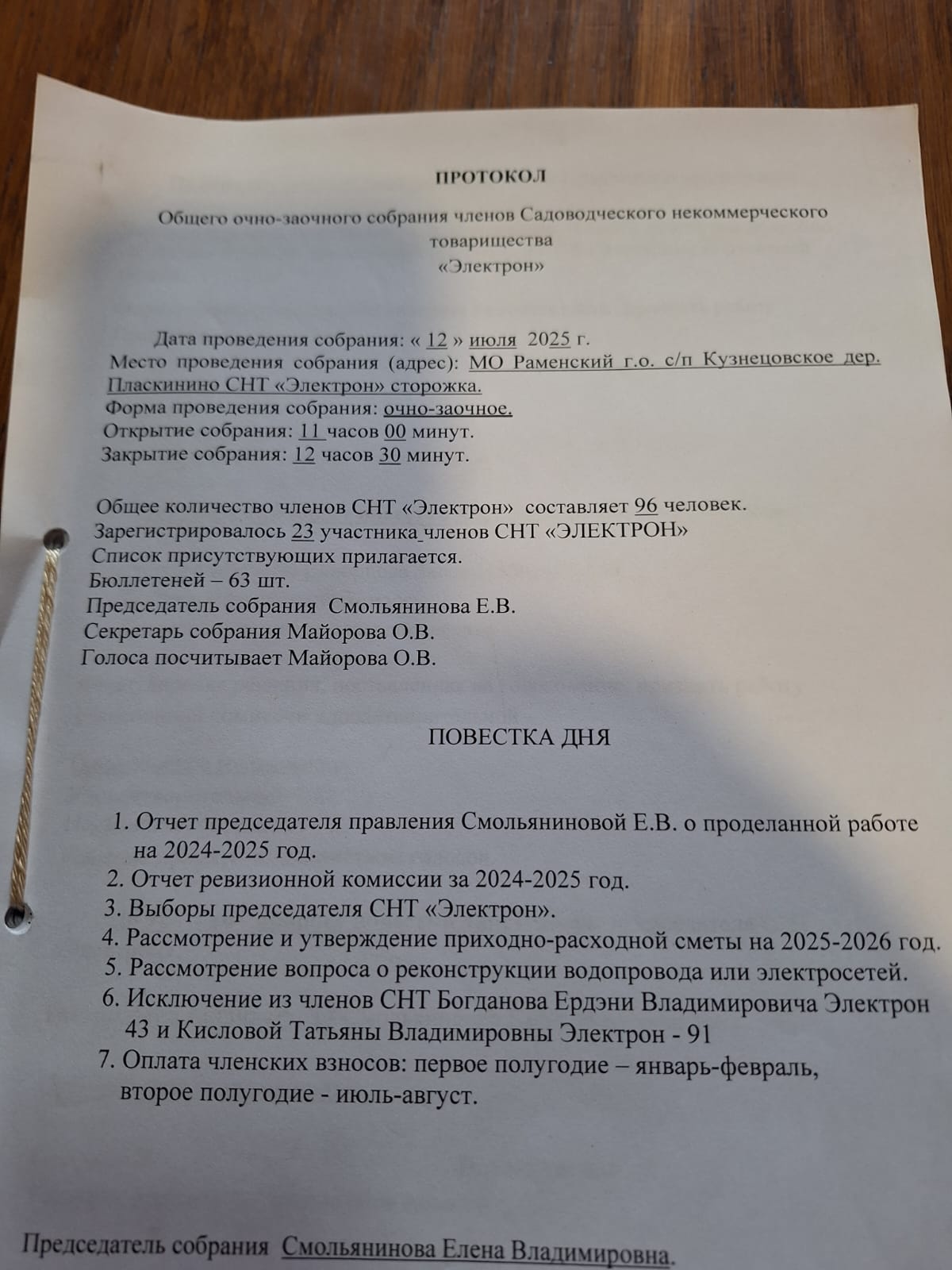Протокол отчетно-выборного собрания 2025